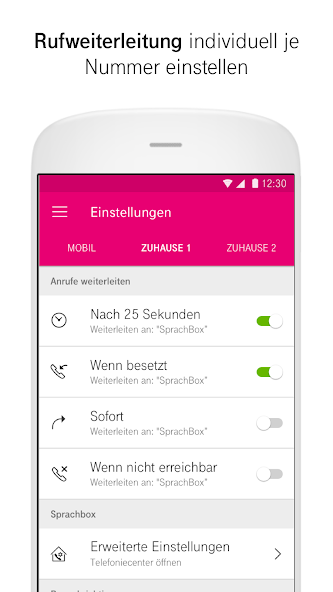 Furthermore, the app enables you to easily manage all your mailbox settings such as greetings and call redirect etc. – for Mobile and At Home.